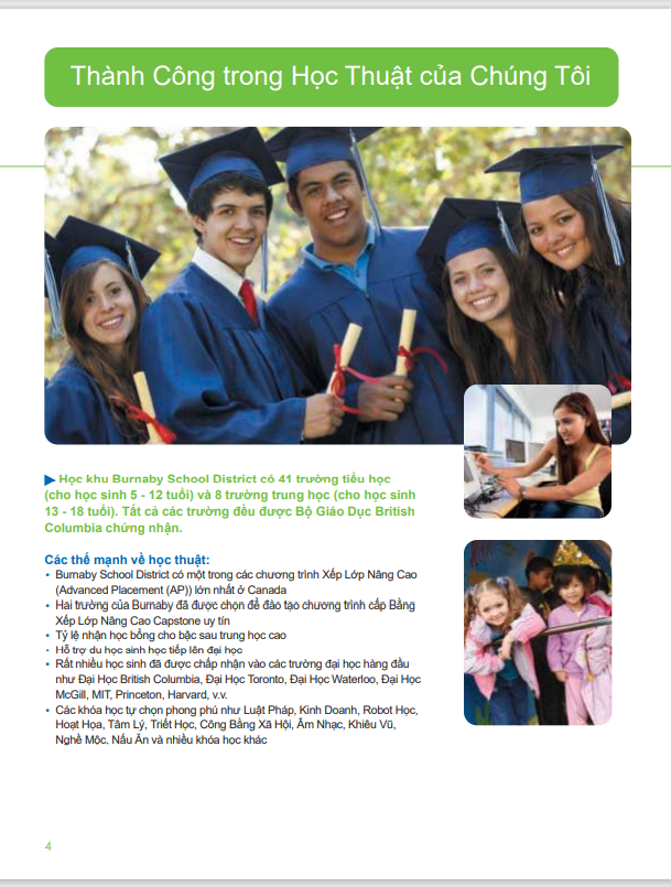 Với chương trình học ưu việt và cơ sở vật chất hiện đại, tất cả đều nằm trong một thành phố có không gian xanh sôi động, trung tâm mua sắm hiện đại, khu dân cư an toàn và phương tiện giao thông công cộng hiện đại, lựa chọn học tập tại Burnaby là một lựa chọn đúng đắn.